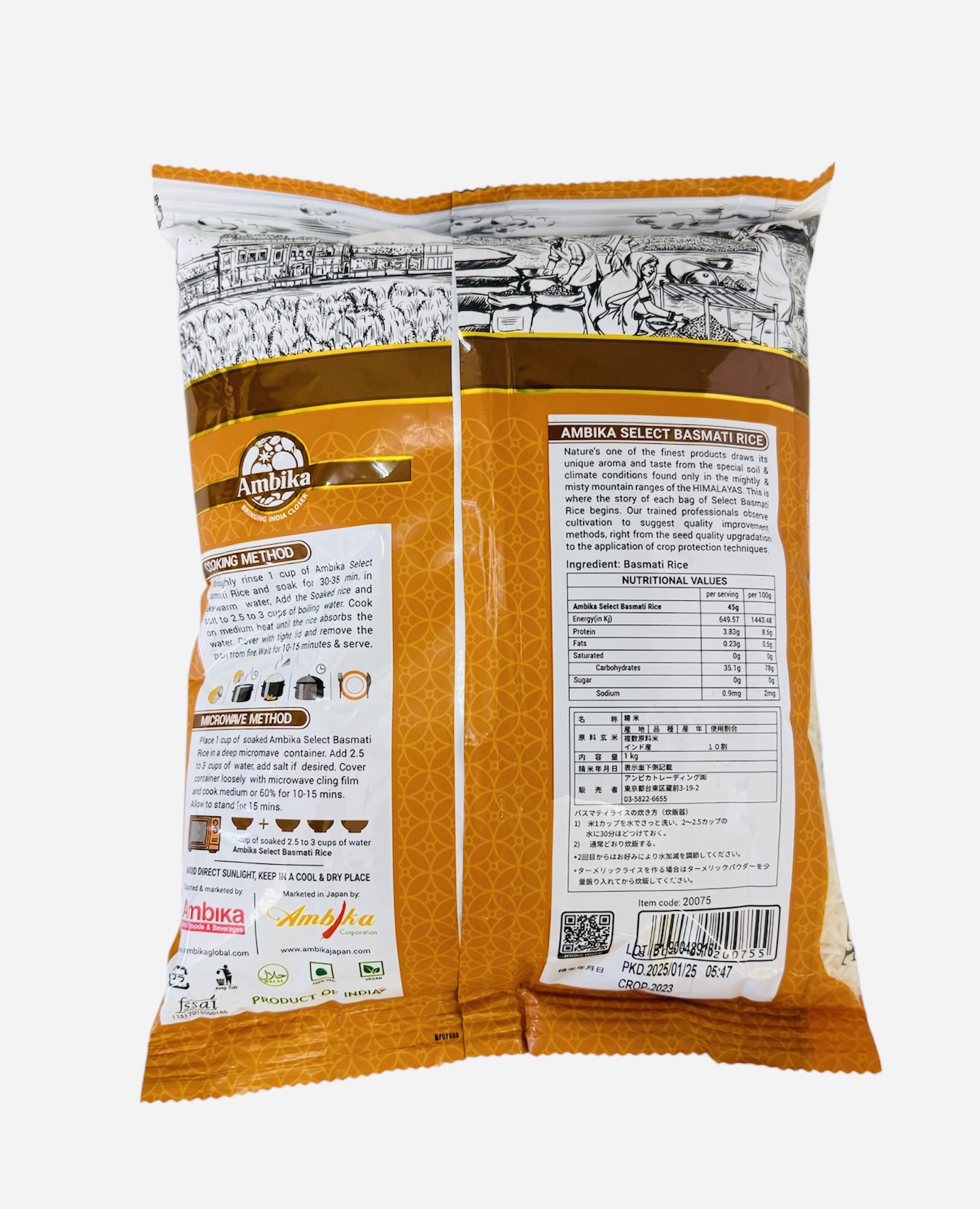 このAmbikaバスマティライスはしっかり熟成させた貯蔵期間2年の超オールドライスです。