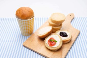 災害時に容器から出してすぐに食べられる、乳・卵不使用のヴィーガン対応の防災パンです。