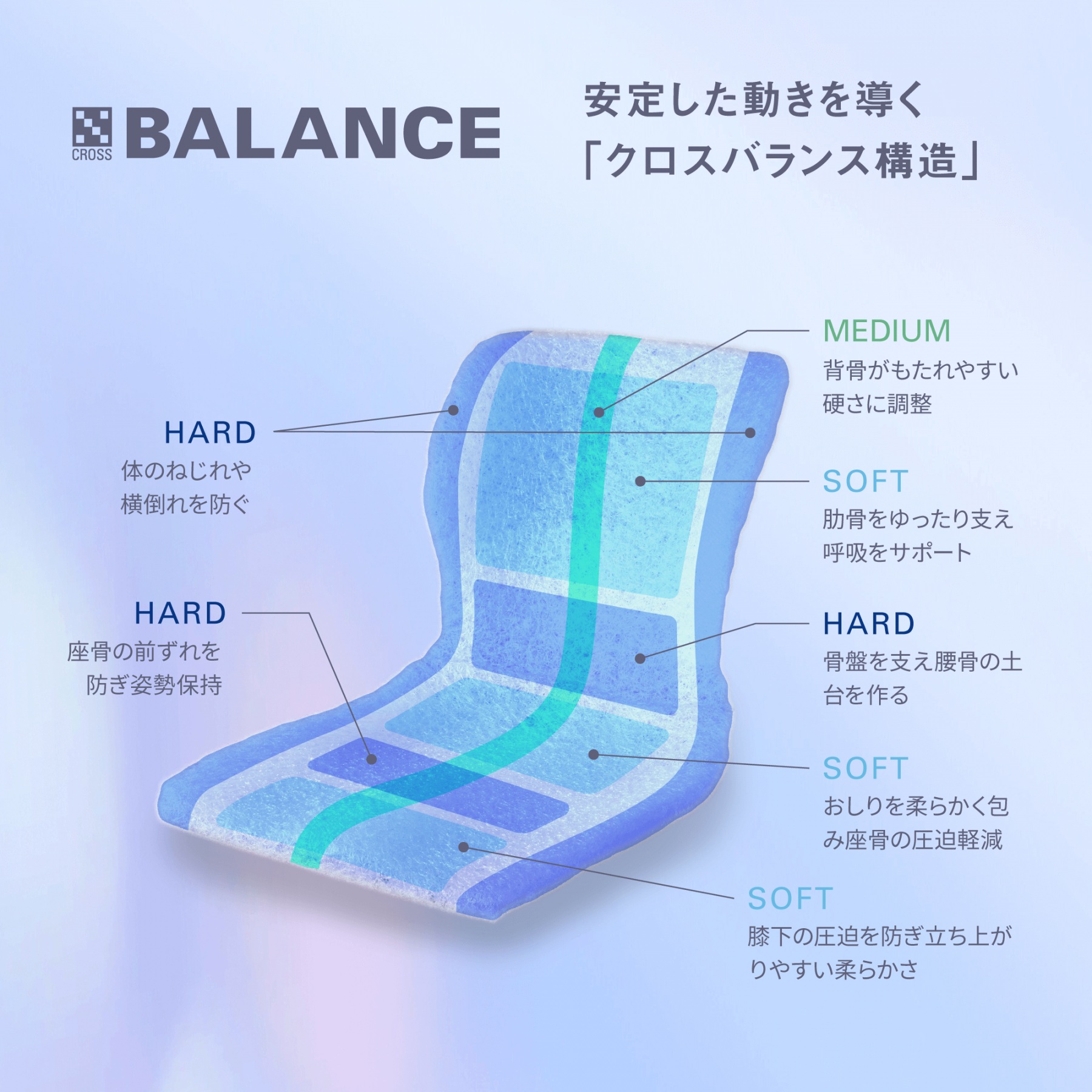 ただもたれやすく座りやすいというだけではなく、自ら重心を整えることを促し、快適な姿勢と機能的な動きを実現します。