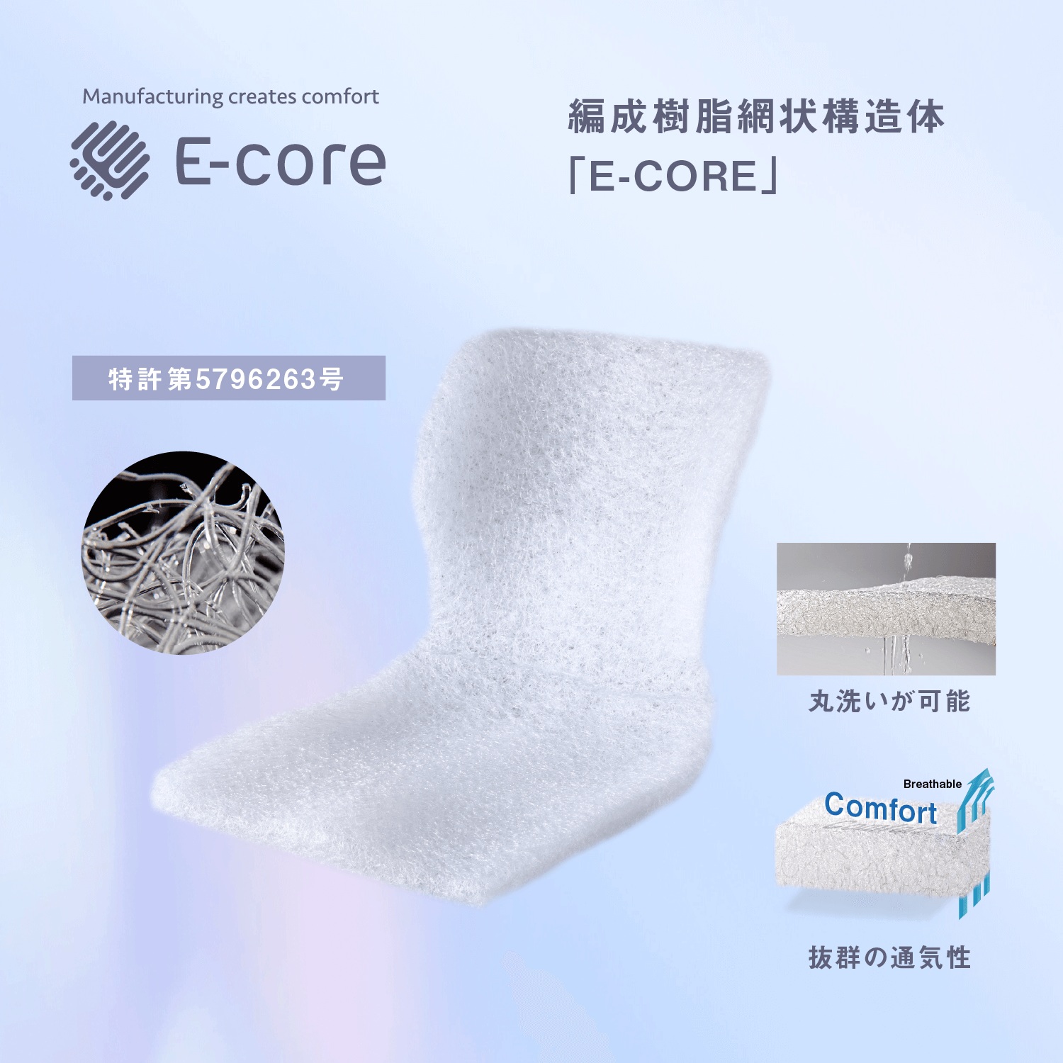 糸状の樹脂を三次元に組み合わせたE-COREの特徴