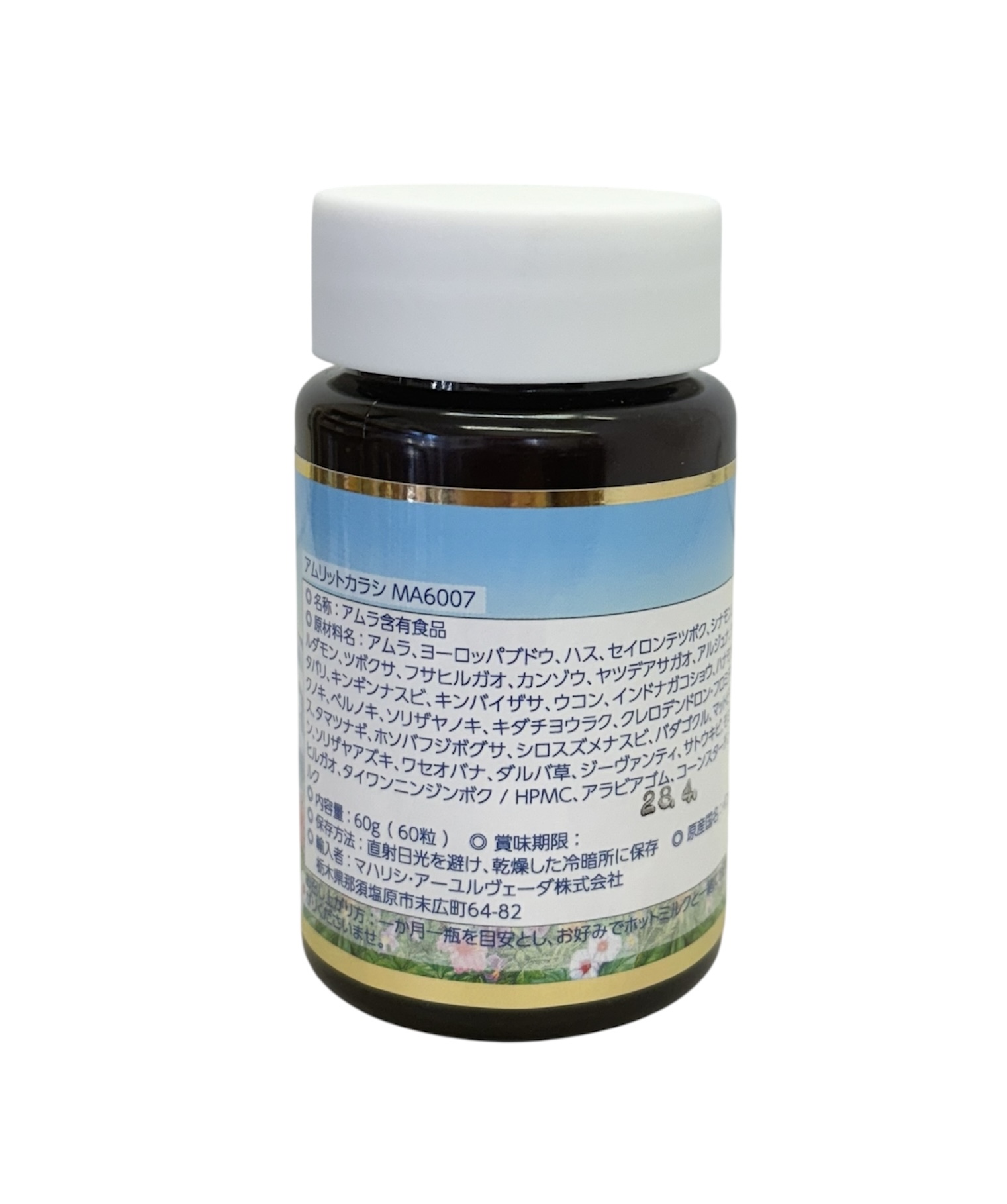 アムラ、ブドウ、シナモン、カルダモン、キンバイザサ、ウコン、